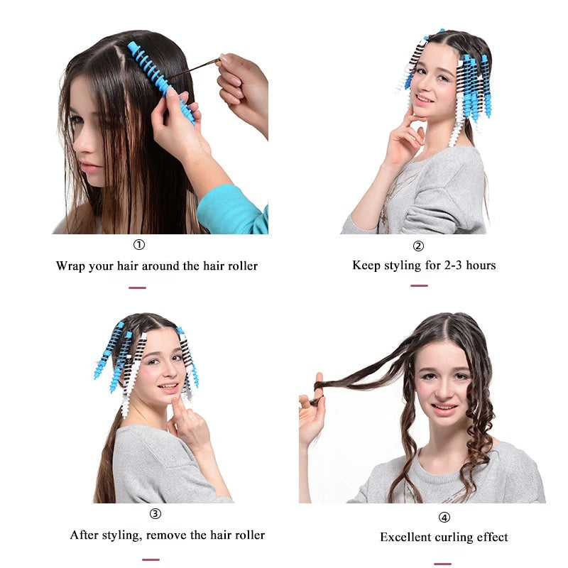 Easy to use: Just pick a strand of hair and hook it onto a spiral perm, then spin the hair around and fix it with c-ring clips, hold for a few minutes, can make your hair curly, and make your hair look different.